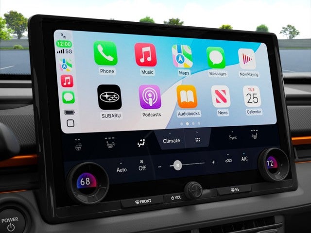 - Radio: Subaru 14" Multimedia System -inc: AM/FM stereo, HD radio, multi-touch gesture high resolution display screen, cloud navigation system (navigation subscription required), Bluetooth® audio streaming and hands-free phone connectivity (refer to subaru.com for cell phone compatibility), Bluetooth® hands-free SMS text messaging connectivity (refer to subaru.com for cell phone compatibility), SiriusXM radio (4 months free trial included/subscription required after), smartphone integration: Android Auto and Apple Carplay w/full screen view and wireless connection, integrated streaming (30 days trial included/subscription required after), assistant w/dual-zone voice control system w/driver and passenger headliner microphone, steering wheel talk switch and audio system, basic function operation, media operation and audio tune operation, USB and Over The Air (OTA) audio system update, USB/Map Over The Air (MOTA) navigation system update, steering wheel control switches for audio and Bluetooth®, 6 speakers, dual Qi (15W each), wireless charging pad, illuminated driver USB C input/charge port and illuminated passenger USB C charge port
