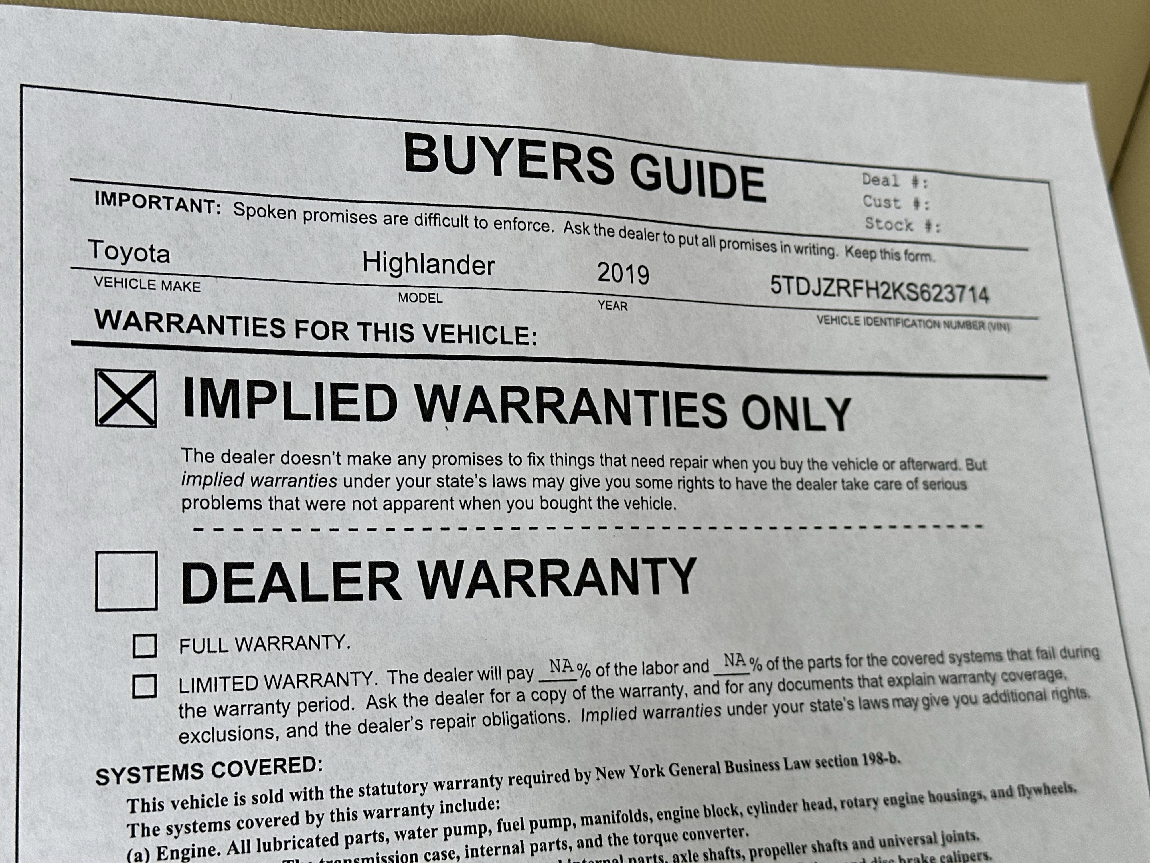 - Vehicle Name: Toyota Highlander