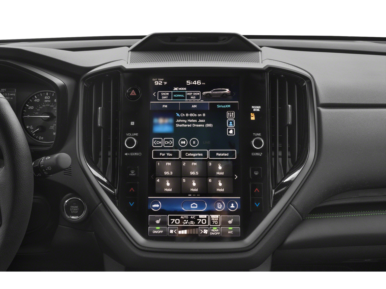 - Radio: Subaru STARLINK 11.6" Multimedia Nav System -inc: AM/FM stereo HD Radio, multi-touch gesture high resolution display screen, voice activated controls for radio and navigation, Bluetooth audio streaming and hands-free phone connectivity w/SMS text messaging connectivity (refer to subaru.com for cell phone compatibility), Near Field Communication (NFC), TomTom navigation software w/What3Words, iPod control capability, SiriusXM All Access radio (4 months free trial/subscription required after), SiriusXM Traffic (3 years free trial/subscription required after), SiriusXM Travel Link (3 years free trial/subscription required after), smartphone integration for Android Auto and Apple CarPlay w/full screen view and wireless connection and STARLINK cloud applications, USB audio system update, TomTom navigation system update w/USB/Map Over The Air (MOTA) (3 years free map updates), steering wheel controls for audio and Bluetooth, harman/kardon quantum logic surround sound speaker system w/14 speakers, subwoofer and harman/kardon 792 watt equivalent maximum output amplifier, 3.5mm illuminated auxiliary input jack, and illuminated USB A and C input/charge ports