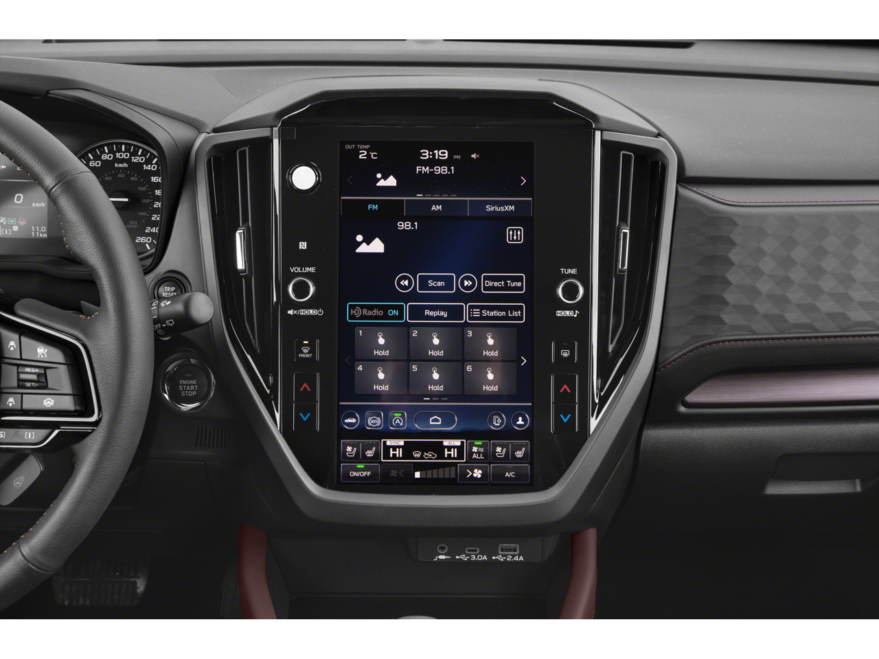 - Radio: Subaru 11.6" Multimedia Navigation System -inc: valet mode, integrated center information display, AM/FM stereo HD Radio, multi-touch gesture high resolution display screen, voice activated controls, voice activated navigation, Bluetooth audio streaming and hands-free phone connectivity w/SMS text messaging connectivity (refer to subaru.com for cell phone compatibility), TomTom navigation software w/What3Words, iPod control capability, SiriusXM w/360L (4 months free trial/subscription required after), SiriusXM Travel Link (3 years free trial/subscription required after), SiriusXM Live Traffic (1 year free trial/subscription required after), smartphone integration for Android Auto and Apple CarPlay w/full screen view and wireless connection, USB and Over The Air (OTA) audio system update, TomTom navigation system update w/USB/Map Over The Air (MOTA) (3 years free map updates), steering wheel control switches for audio and Bluetooth, harman/kardon speaker system w/11 speakers and 576 watt equivalent maximum output amplifier, 3.5mm auxiliary input jack and roof mounted audio and satellite antenna